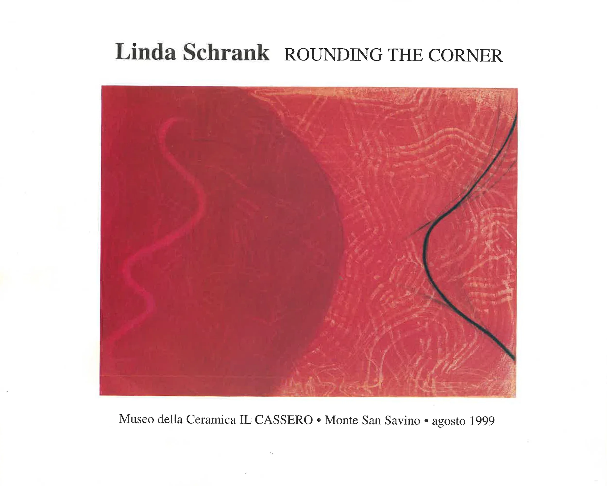 Though this new suite of seven etchings, Rounding the Corner, differs in many respects from the paintings and large drawings which have preceded them, they are clear extensions of an abiding set of issues. The dense layerings of thick pigment with elusive linear images emerging and retreating have here given way to open fields of shimmering color with two and sometimes three wavering vertical lines transgressing the space. The process of “losing and finding” which propels her painting method, has found a leaner, more deliberate form in these prints. Stripped of the materiality of the painted surface which drives the process of her painting, Schrank has had to distill her principal issues: the interaction of the animated line in space. By paring down her vocabulary, she has isolated the most salient characteristics of her images and made more overt her intentions. But she has done so without losing the mystery of the undefined that is so critical to keeping an image open to the intimacy of personal experience.